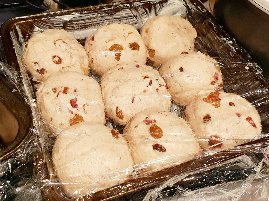 When the dough was rising, I was actually a little sceptical as it felt as though it wasn’t rising enough, and I resigned myself to yet another Easter Bun Bake Fail – I could probably write a whole other blog on these experiences alone! By the second rising in bun form, I turned around after making the topping for the crosses to find these gloriously puffed up raw balls of heavenly scented dough just waiting for me. I was not disappointed!