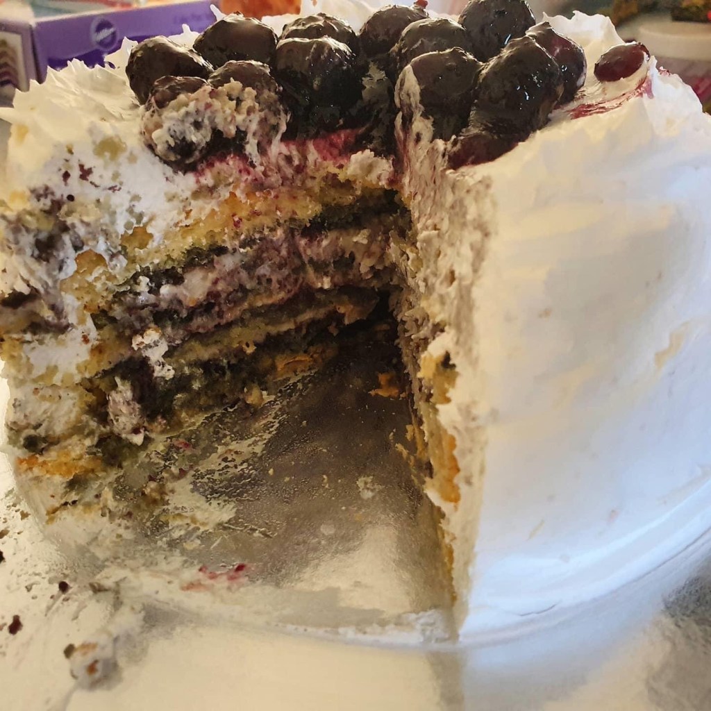 This stunning-looking cake sprung up from a recipe I stumbled upon is a Facebook Recipes group. I adjusted the recipe to be gluten and dairy free, and significantly reduced the sugar content. Since I’d purchased some new layering cake pans, I’d already had a few goes at different flavour combinations of this cake such as a tiramisù version and a lemon myrtle and peach version so, making this one for my parents was a lot easier and the flavour combination was one I knew they’d both appreciate.